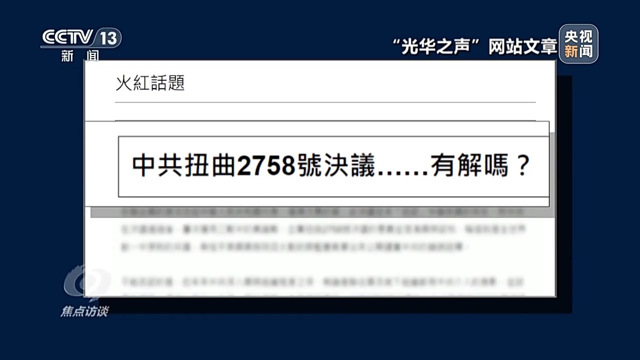 近两年,为配合民进党当局大肆宣扬“台独”分裂谬论,“心战大队”多次在他们的宣传平台发布扭曲联大第2758号决议的音视频及文章。