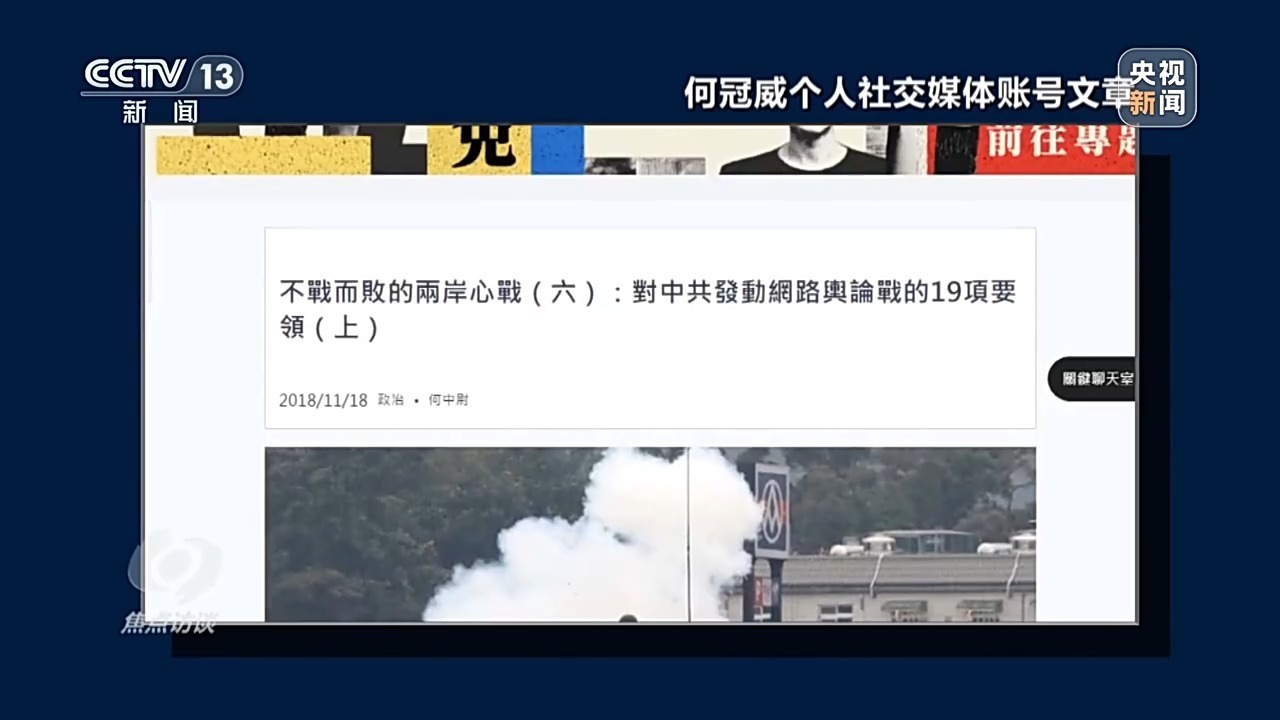福建省厦门市公安局民警介绍,经调查取证,台湾“心战大队”前身是台军“政战总队”,1999年进行部分改组,合并为“心战大队”。蔡英文采纳所谓的“国家安全会议”的建议,利用“心战大队”开展认知战。“心战大队”通过多种手段宣传“台独”和煽动分裂国家。首先是架设网站抹黑攻击大陆。“心战大队”通过搭建“台海之鹰”“汉声电台”“光华之声”等网站和电台,制作发布了大量抹黑攻击大陆的文章和音视频,大肆传播“台独”思想,煽动岛内民众“抗中保台”,妄图阻挠祖国统一进程。